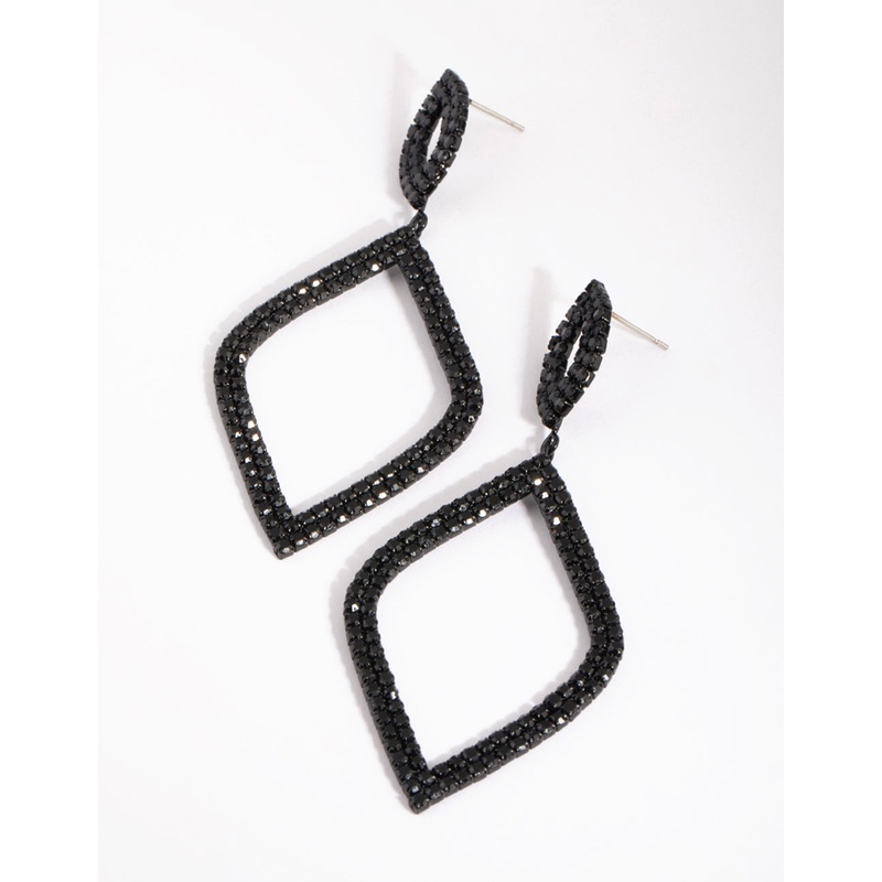 Matte Black Diamante Drop Earrings