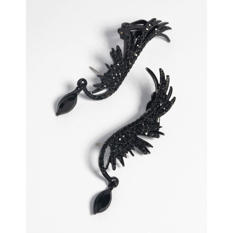 Matte Black Diamante Wing Cuff Earrings