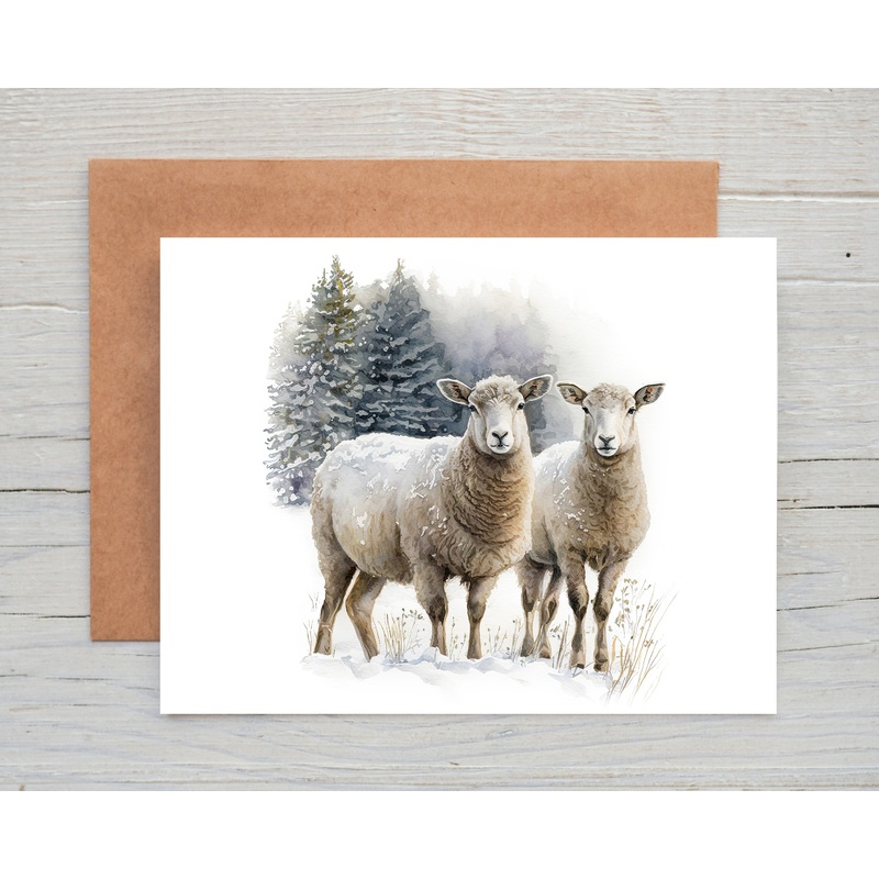 These beautiful watercolour images of sheep are printed on heavy cardstock. The cards are 4.25″ X 5.5″ (A2) and are blank inside. Each card comes perfectly paired with a recycled kraft envelope and a cellophane sleeve for safekeeping during shipping.