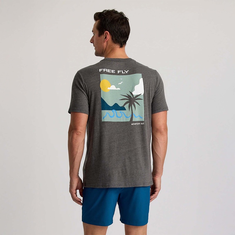 Inspired by exploration of coastlines both far-flung and close to home, the Downshore Tee has that same soft and worn-in feel of your favorite old teeminus the tattered edges and sweat stains. The sun-soaked scene on the back will have you (and anyone behind you) dreaming of warm days well-spent, with toes in the sand and surf on the brain.