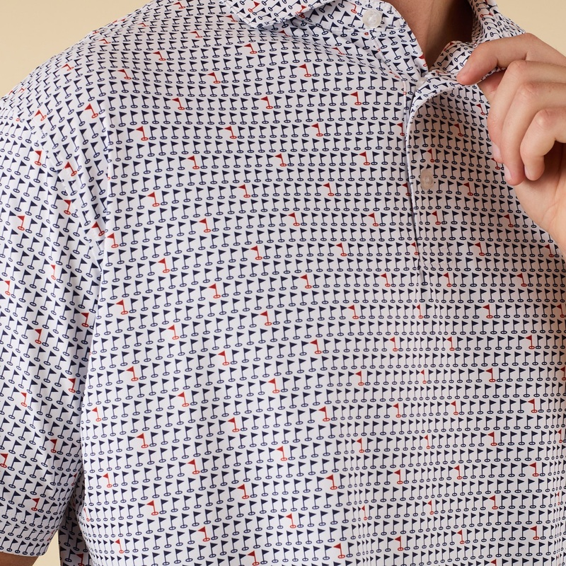 Be ready for the links in this Coast Apparel Mini Flag Printed Polo. Constructed with quick-drying and stretchable fabric, this classic design is made for all day comfort and style.