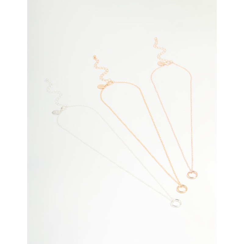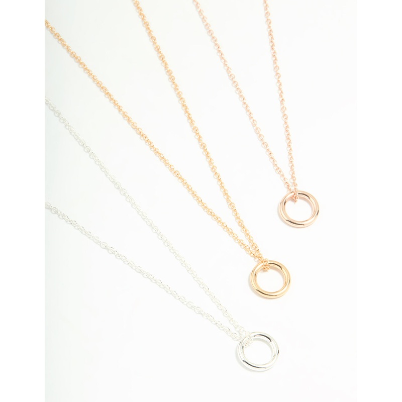 Mixed Metal Circle Pendant Necklaces 3-Pack