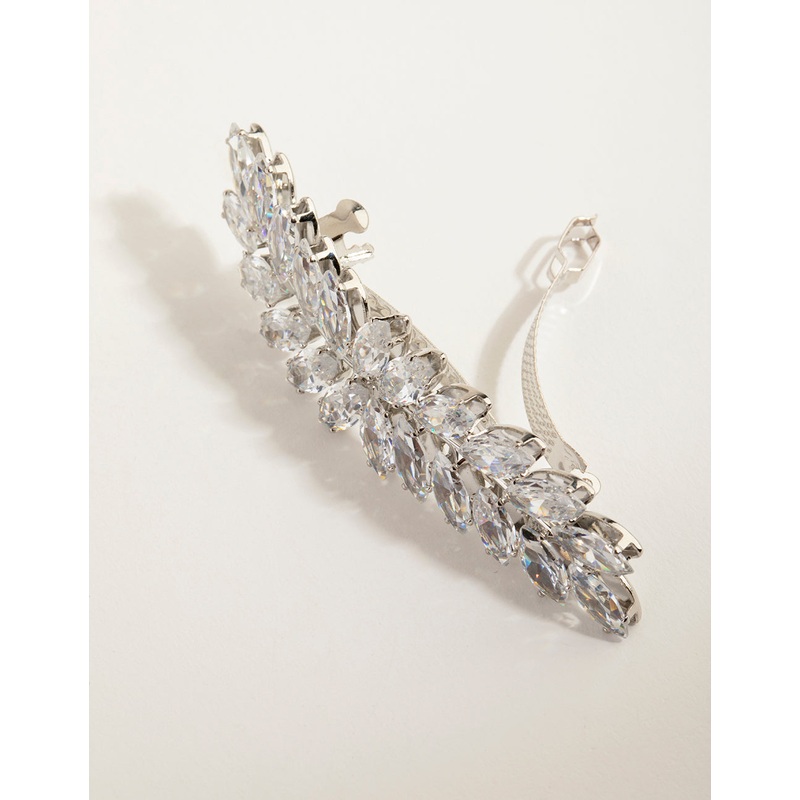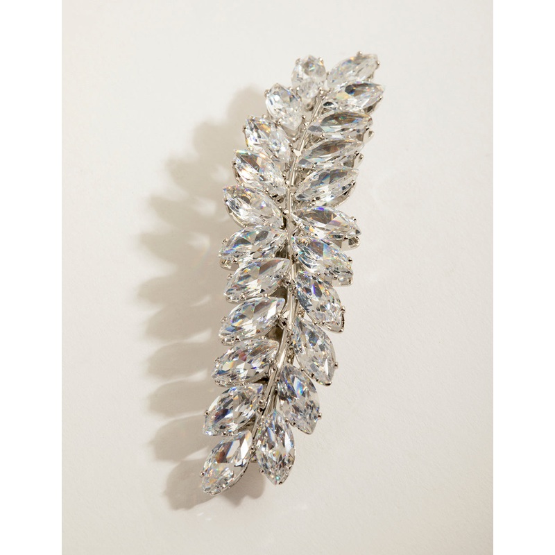 Wear soft statement pieces to complete your look! This pretty vintage-style clip features a series of navette-cut crystals arranged in a leaf-like design with a silver-toned setting. The crystals have been created to closely resemble the clarity and brilliance of true diamonds. Wear this lovely clip to add a finishing touch to formal wear!