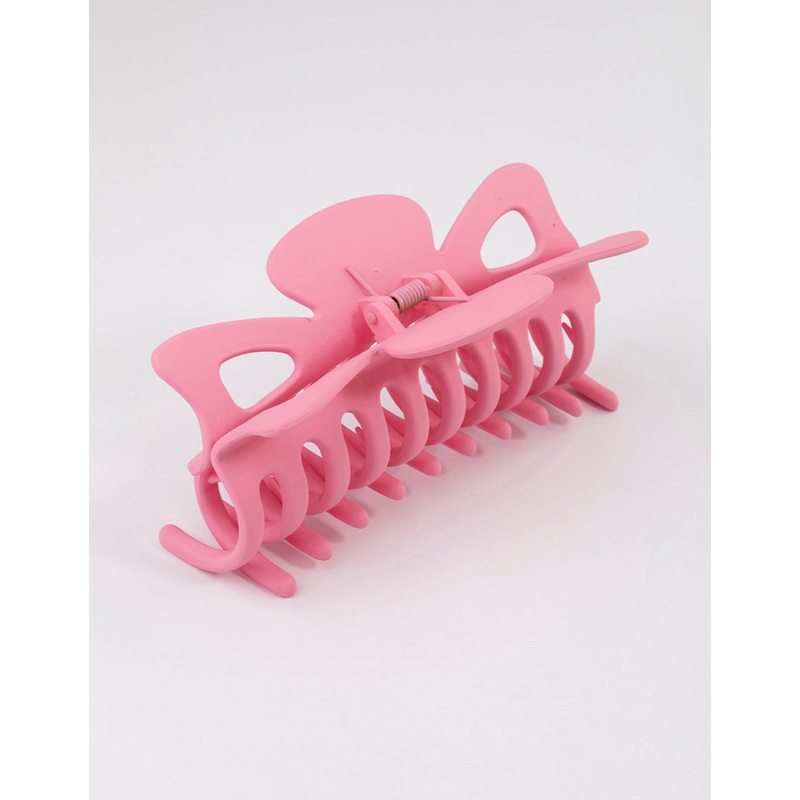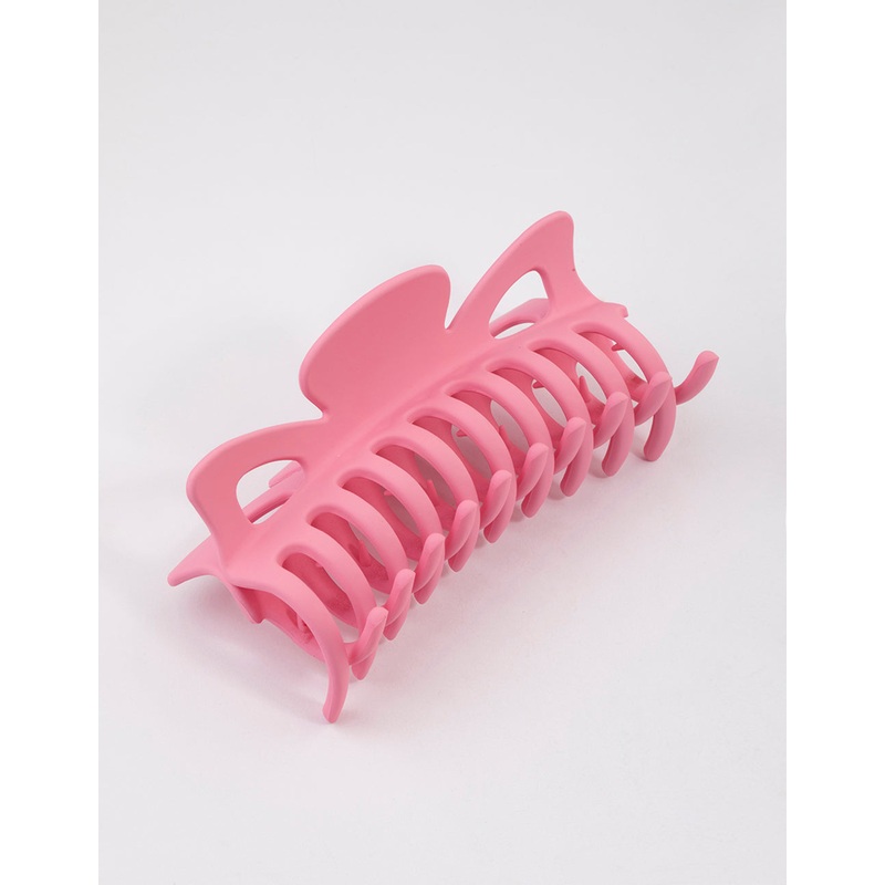 • This ’90s-inspired claw clip features a pink acrylic setting with triangular cut outs for a unique finish.