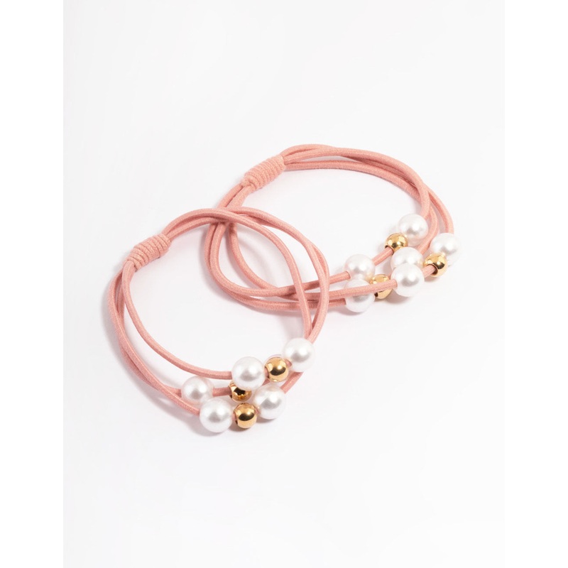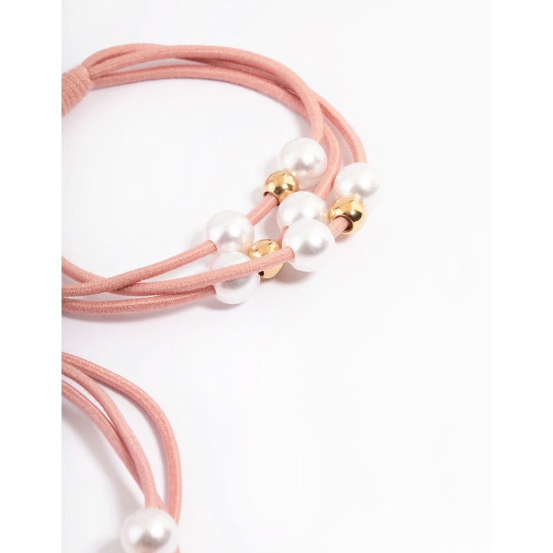 Pink Fabric Pearl & Bead Hair Tie Pack