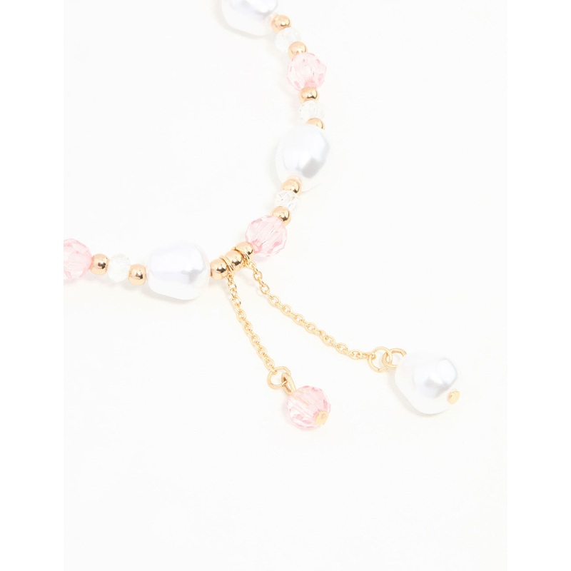 Pink & Gold Beads & Pearls Stretch Bracelet