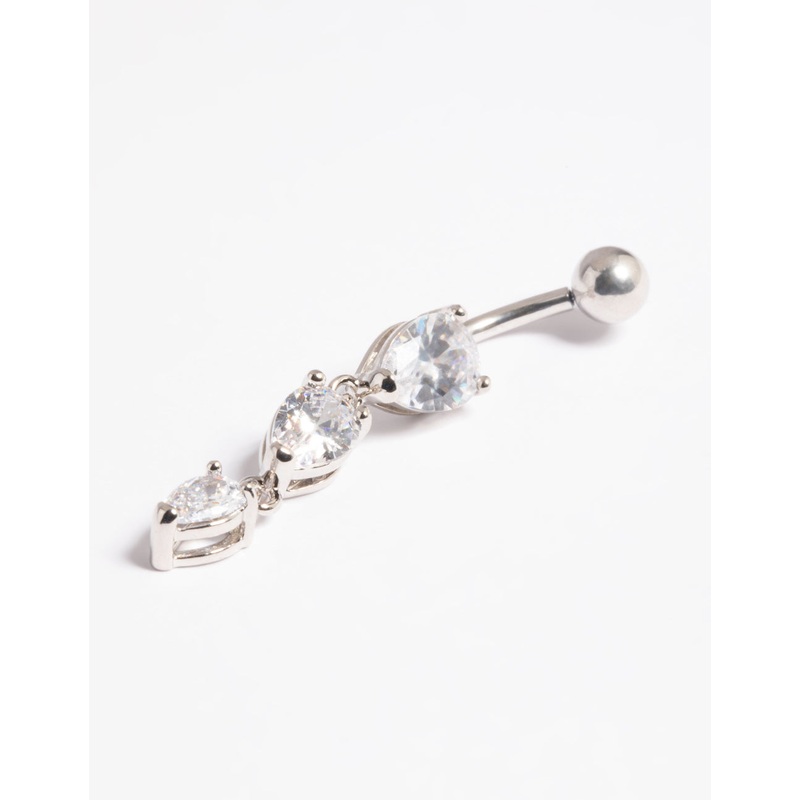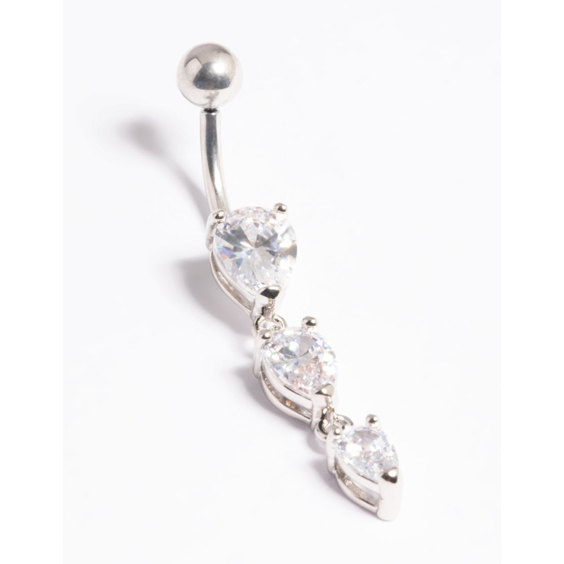 Platinum Plated Threadless Crystal Pear Belly Bar