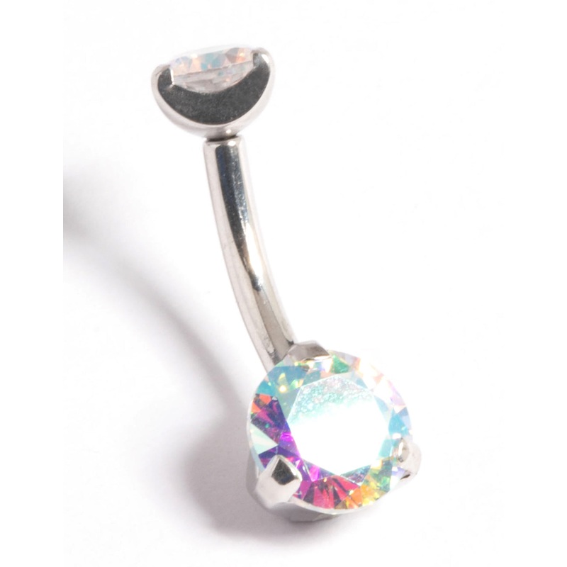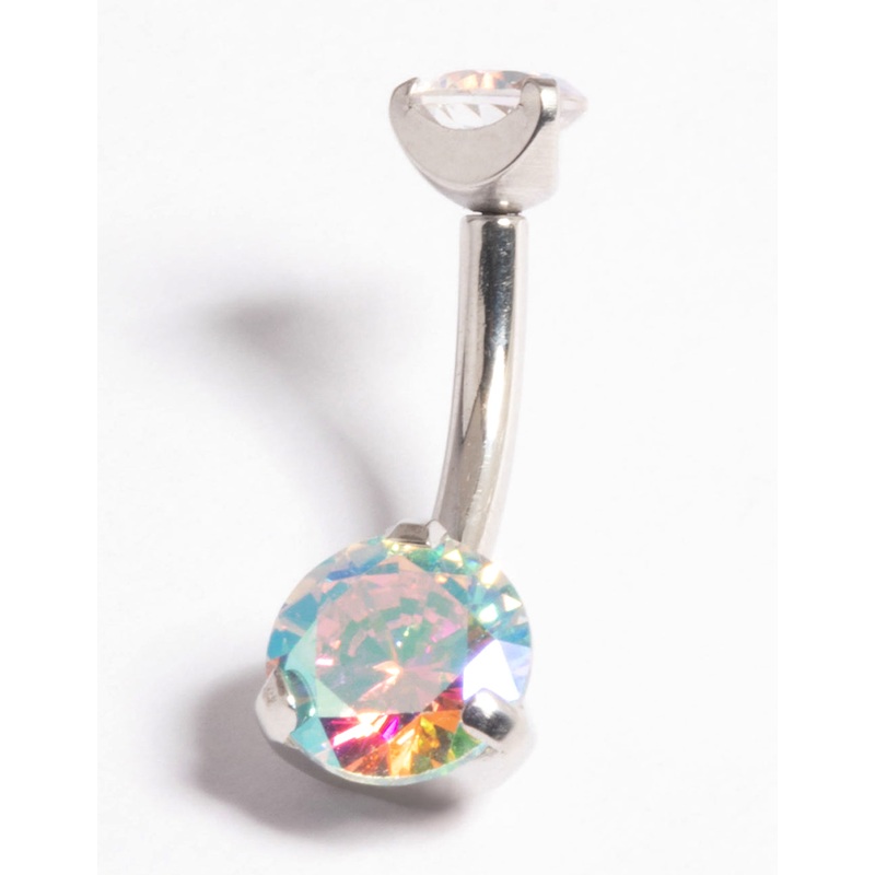 Platinum Plated Titanium Threadless Iridescent Belly Bar