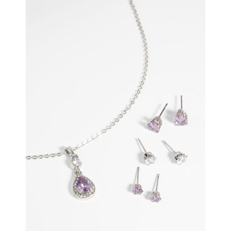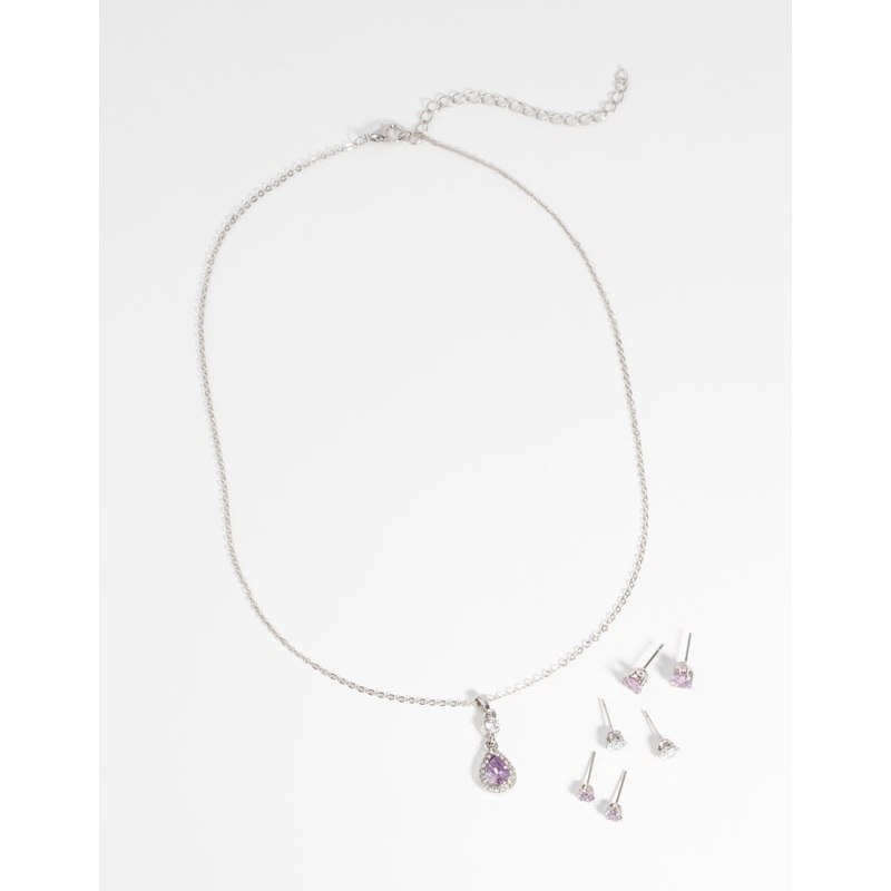 Purple Diamond Simulant Teardrop Necklace & Earrings Set