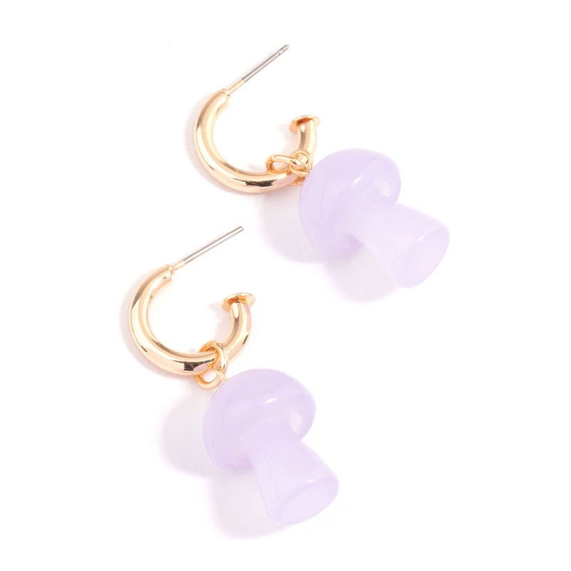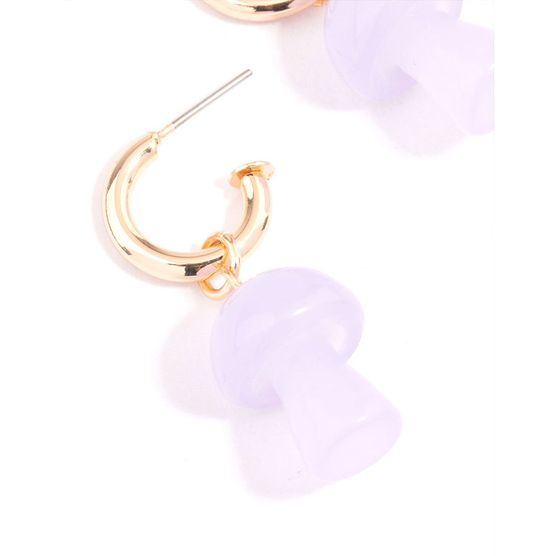• Style these purple, adorable mushroom huggie earrings with matching accessories from our Purple Collection.