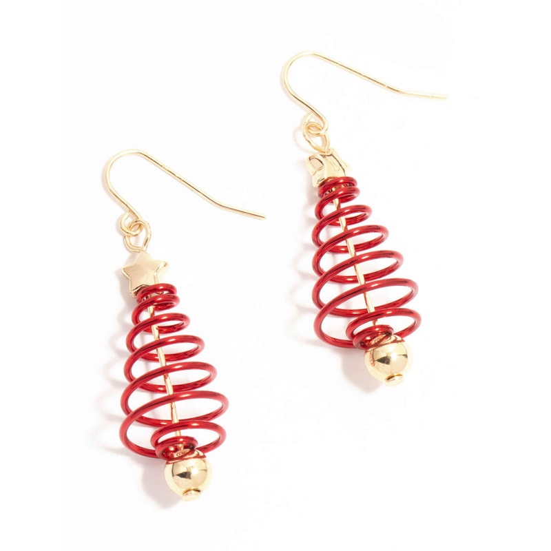 Make a striking statement this festive season with these Red & Gold Spiral Tree Drop Earrings. They add holiday cheer to any ensemble and are perfect for embracing the holiday spirit.