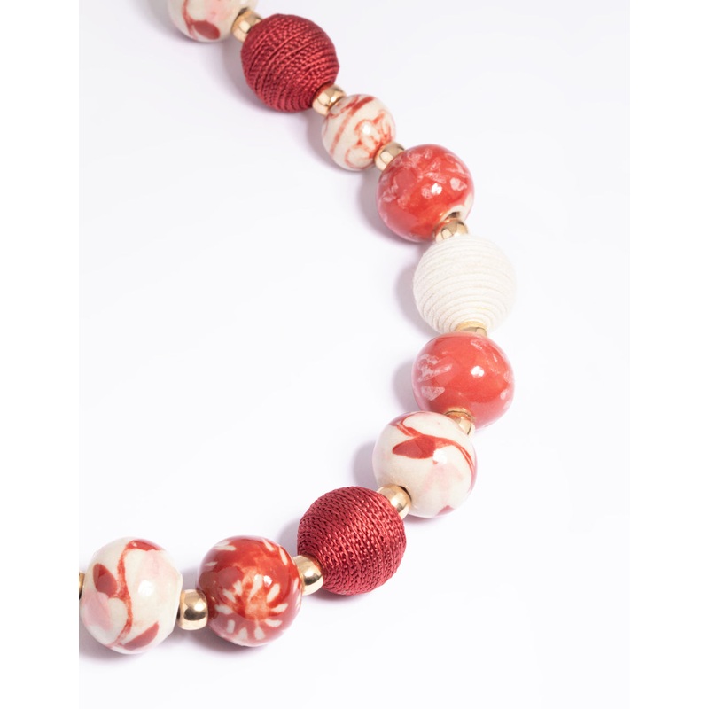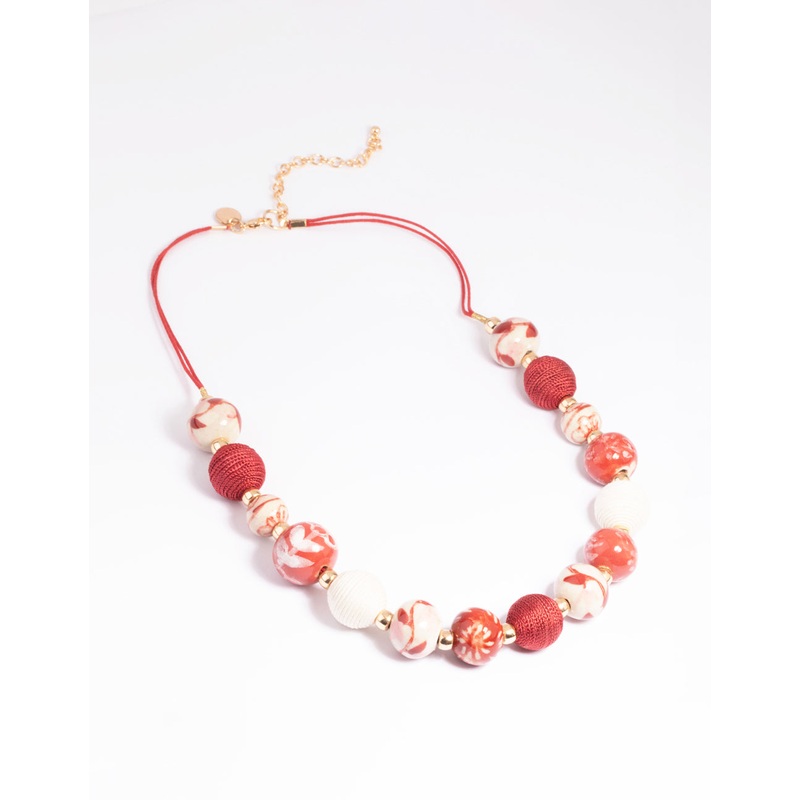 Give your outfit a romantic finishing touch with vivid reds and bold tones. This stunning necklace features a gorgeous design that boasts bright hues. Wear it for a pop of colour!