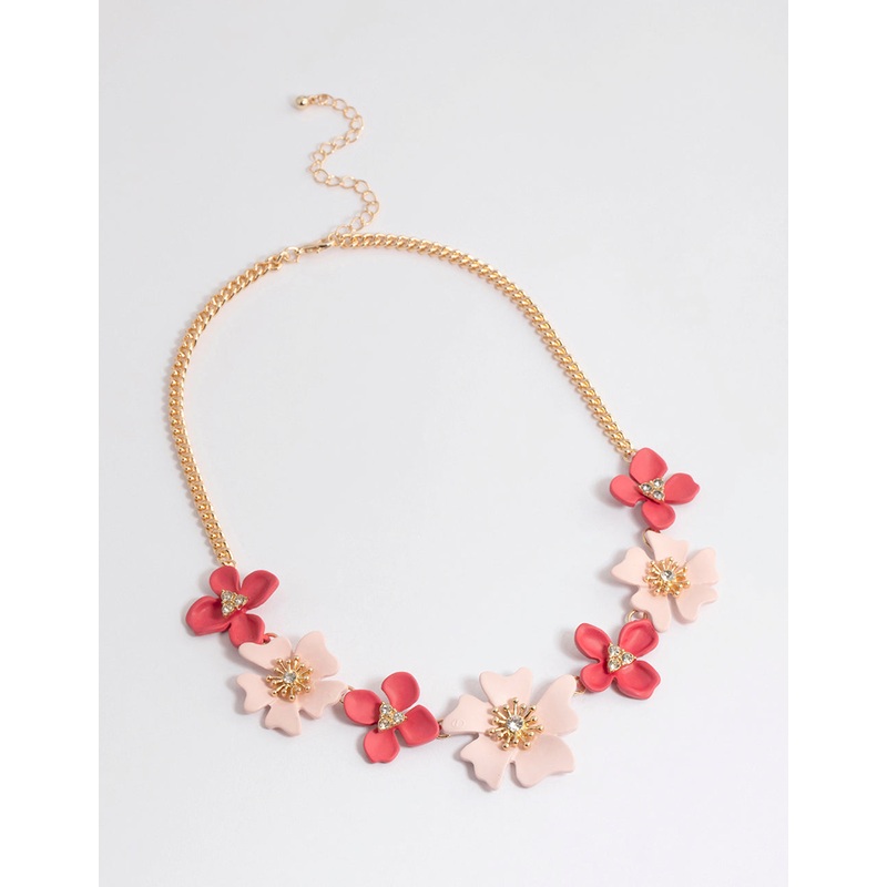 - Style our diamante, floral motif necklace with a ruby embellished curated ear pack for an on-trend look.