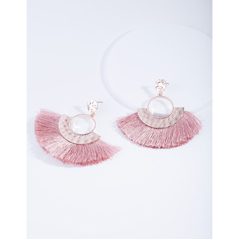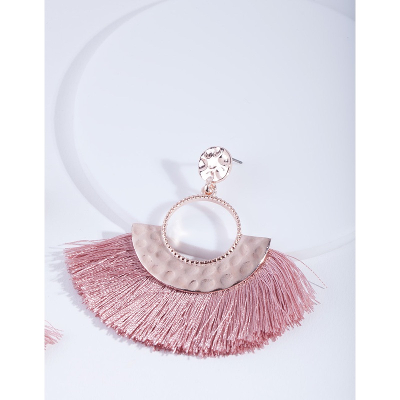 A pair of fun fashion earrings are the perfect way to dress up your daily ensemble. This pair of earrings boast a rose-gold-toned setting with pink fringe. Elevate a casual outfit with this essential must-have earring set!