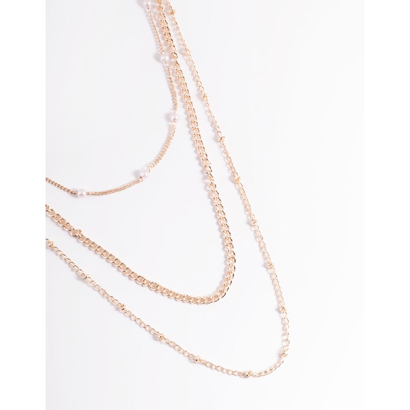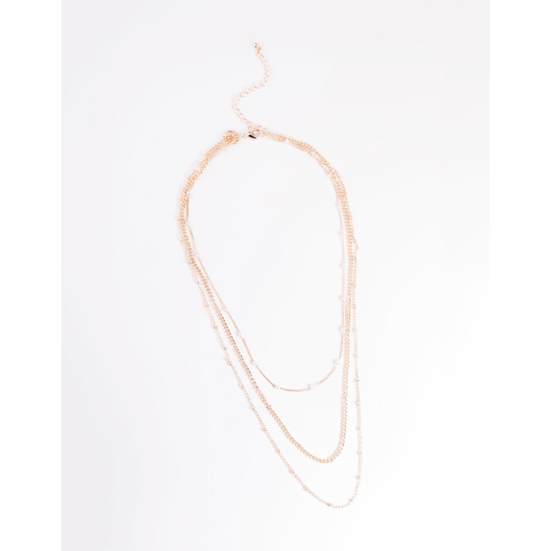 Rose Gold Dainty Multi Chain Pearl Necklace