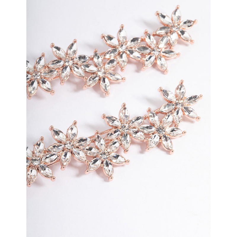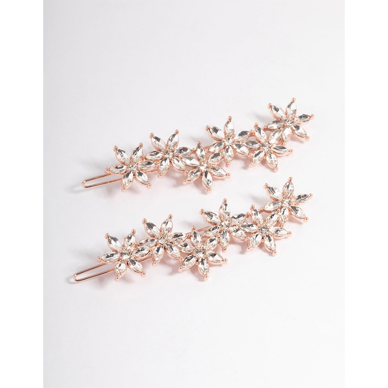 • This set of two, rose gold-toned hair clips are designed with diamante-encrusted flowers for a glamorous, feminine touch.