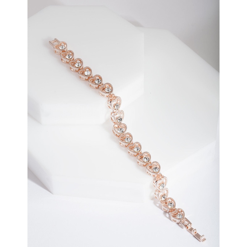 Add a touch of glamour to your wrist with this rose gold-tone bracelet boasts a heart link design encasing diamantes.