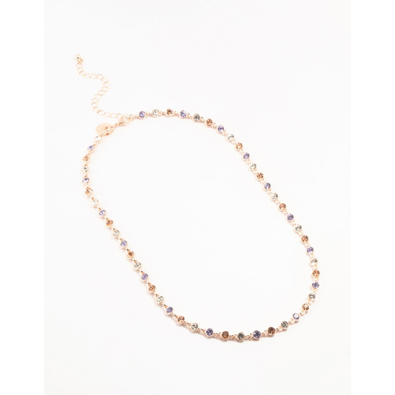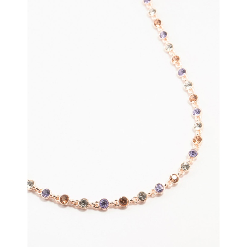 Add a pop of colour with this chic short necklace. Featuring a sleek rose gold base and shimmering multicoloured stones, it blends color and elegance effortlessly.