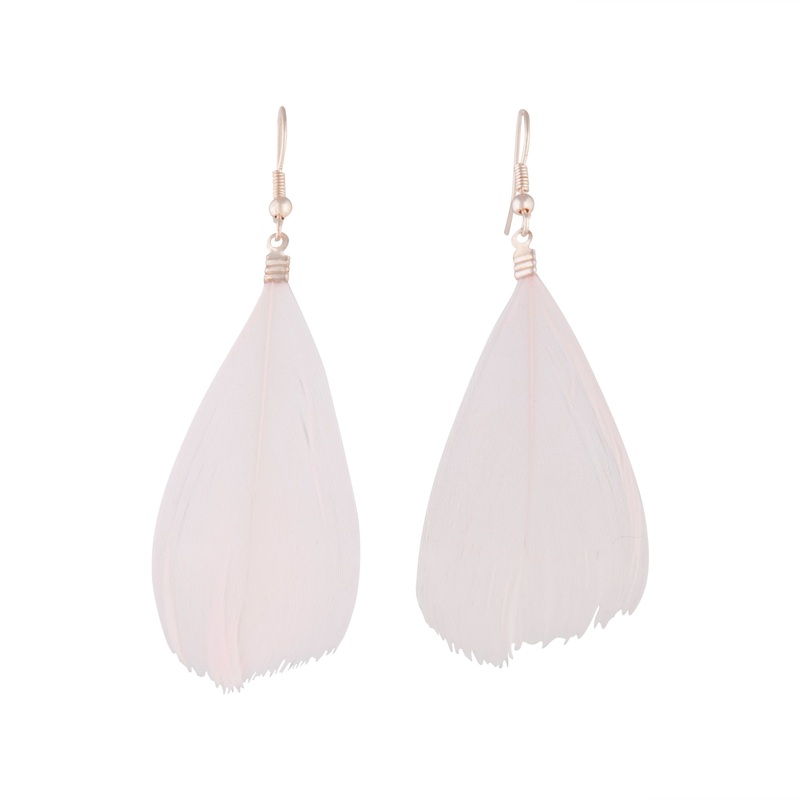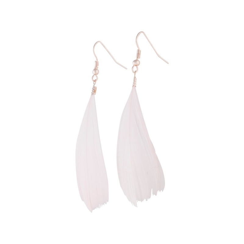On stunning rose gold tone finishes, these earrings are light and lovely with single fine pink feathers.