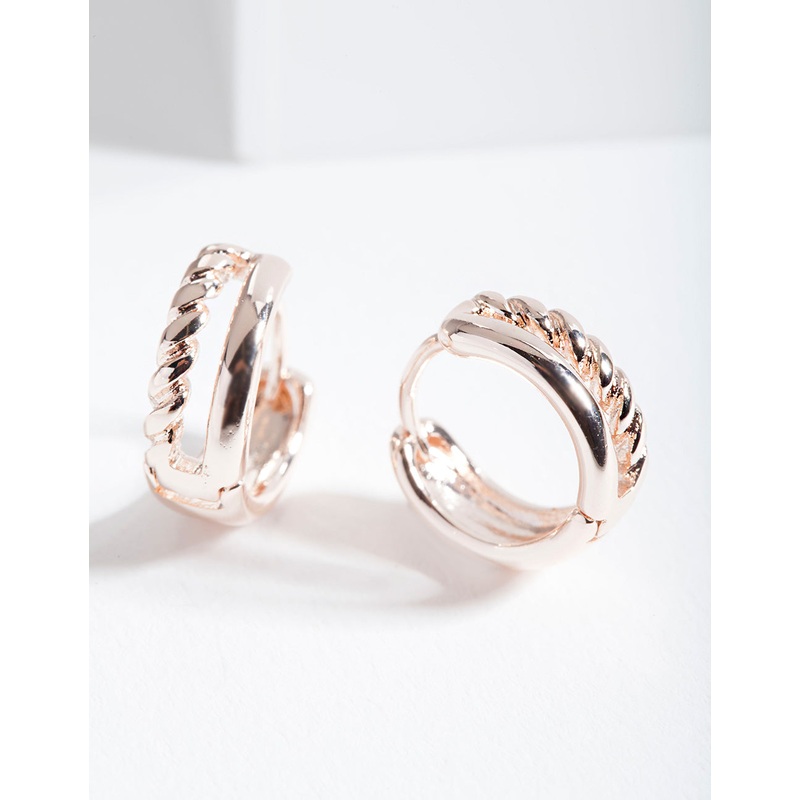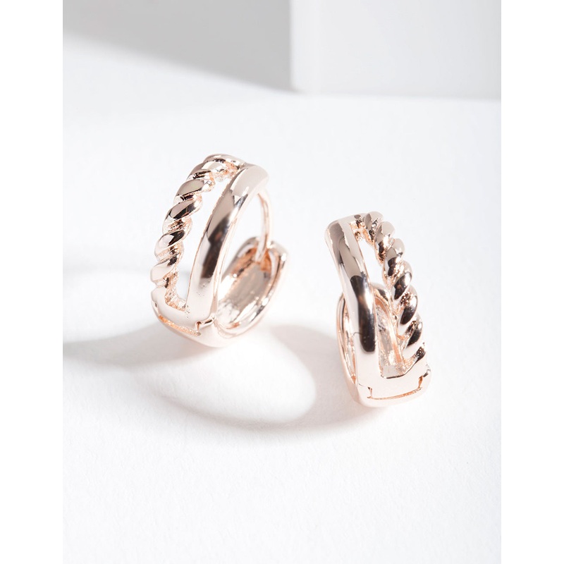 Rose Gold Twisted Huggie Hoop Earrings