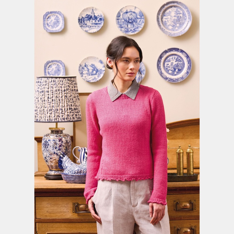 This is a collection of beautifully crafted, timeless knits with a focus on delicate fits and fully fashioned, waist skimming designs for a neat, modern look. Plain textures are combined with rich colourwork, showcasing the jewel tones of this exceptional new yarn.