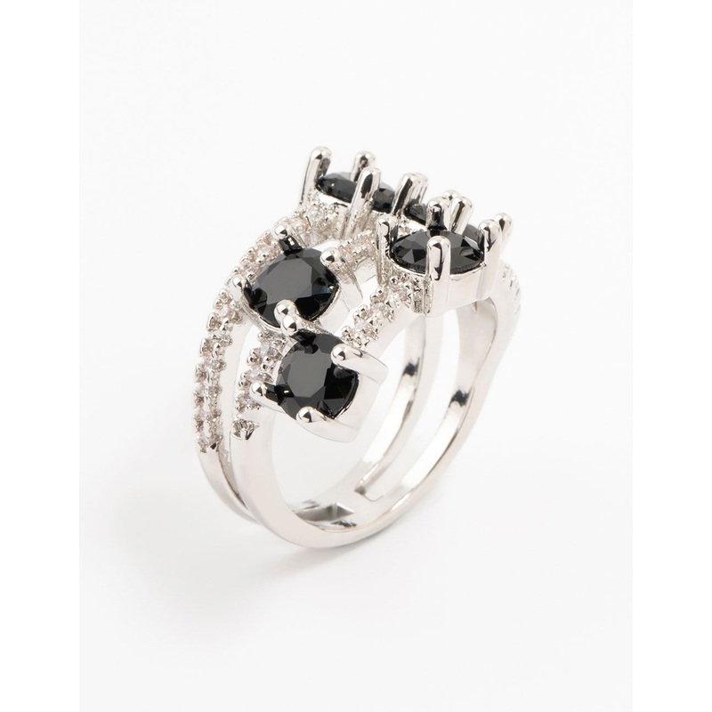 Shine with sophistication in our Silver Black Layered Round Cubic Zirconia Ring. Featuring a sleek, modern design with three dazzling edgy black stones and cubic zirconia crystals. Perfect for adding a glam touch to any outfit.