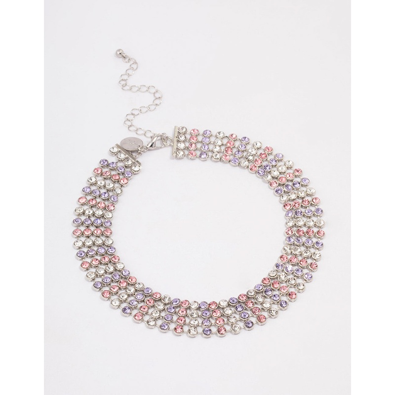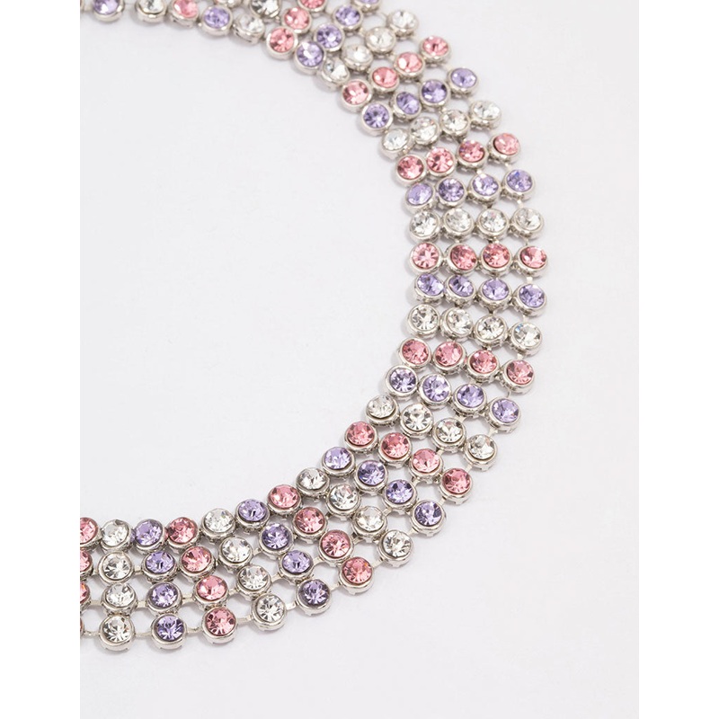 Silver Circle Diamante Layered Choker