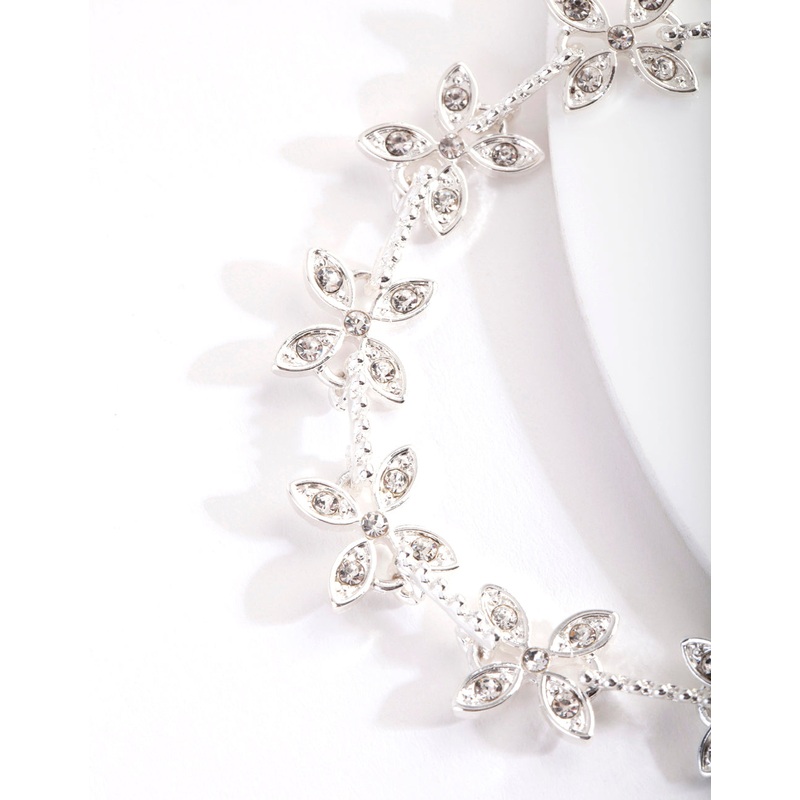 Add a touch of glamour to your wrist with this silver-tone bracelet boasting a floral diamante design.