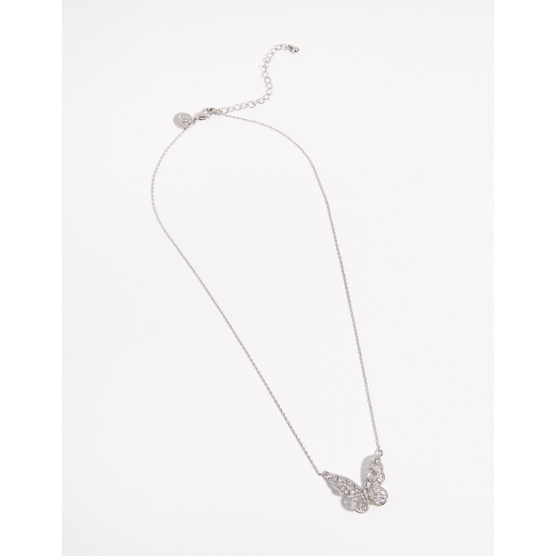 Look fly and shine bright in this silver-toned necklace. It features cubic zirconia baguette stones on a stunning butterfly pendant design.