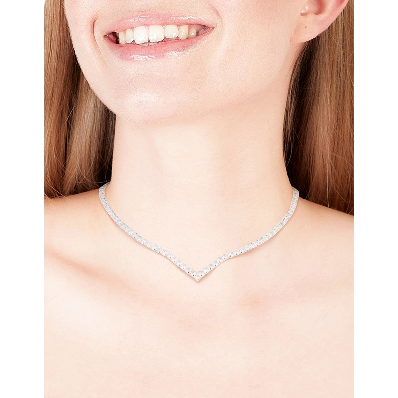 Sparkle with all the facets of a true diamond with cubic zirconia. These lab-created crystals are engineered to be indistinguishable from diamonds to the naked eye. This beautiful silver-toned necklace features a subtle pointed cup chain tennis design with cubic-zirconia embellishments. Pretty and glamorous, wear this for a luxurious finishing touch.