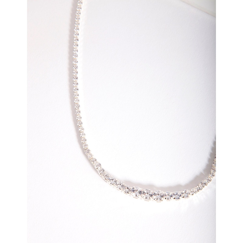 Silver Cubic Zirconia Graduating Diamante Tennis Necklace