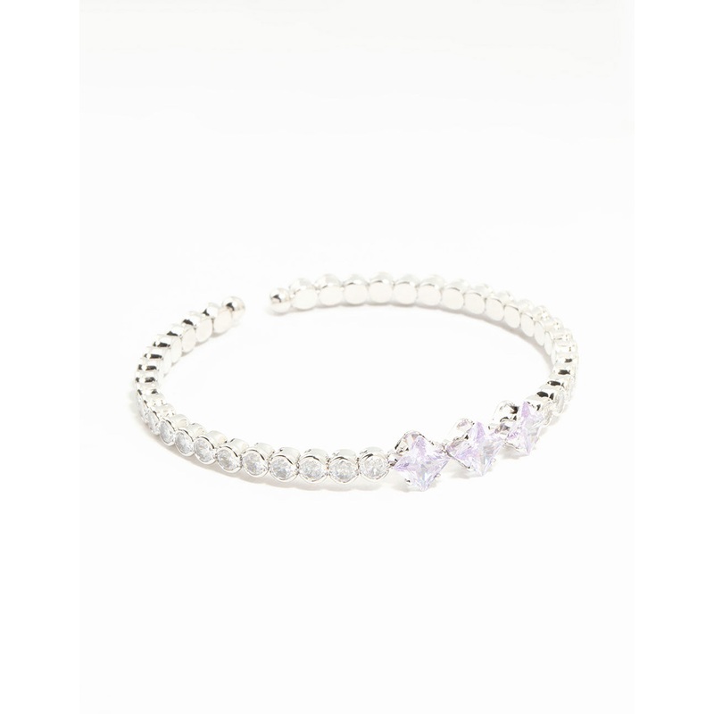 Upgrade your style with this exquisite Silver Cubic Zirconia Princess Wrist Cuff. Its shimmering cubic zirconia crystals, princess-style design, and comfortable cuff fit make this accessory the perfect addition to any outfit.