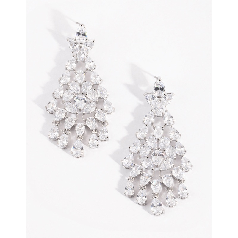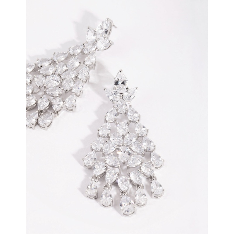 Silver Cubic Zirconia Statement Chandelier Drop Earrings