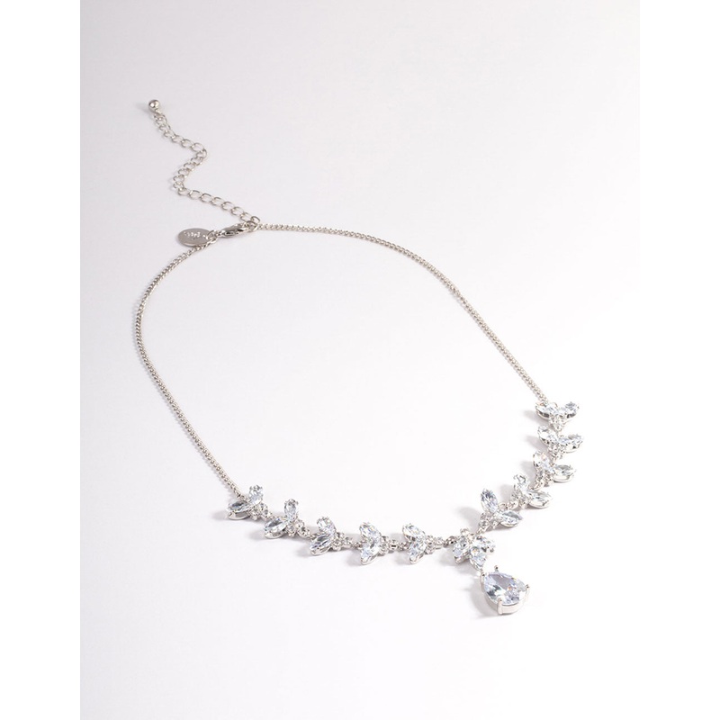 Silver Cubic Zirconia Statement Teardrop Necklace