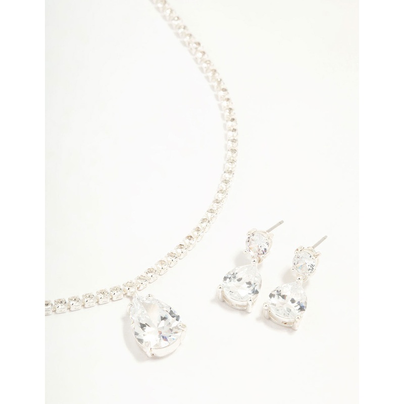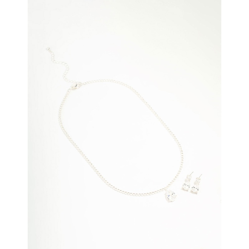 Silver Cubic Zirconia Tennis Necklace & Earring Set