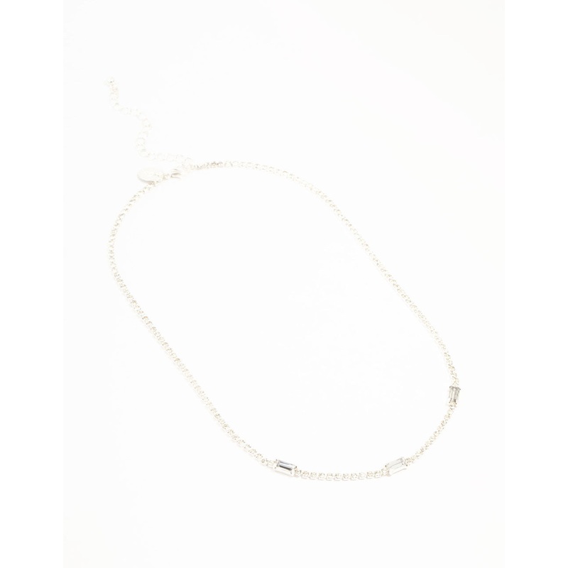 Silver Cupchain Baguette Cut Diamante Station Necklace