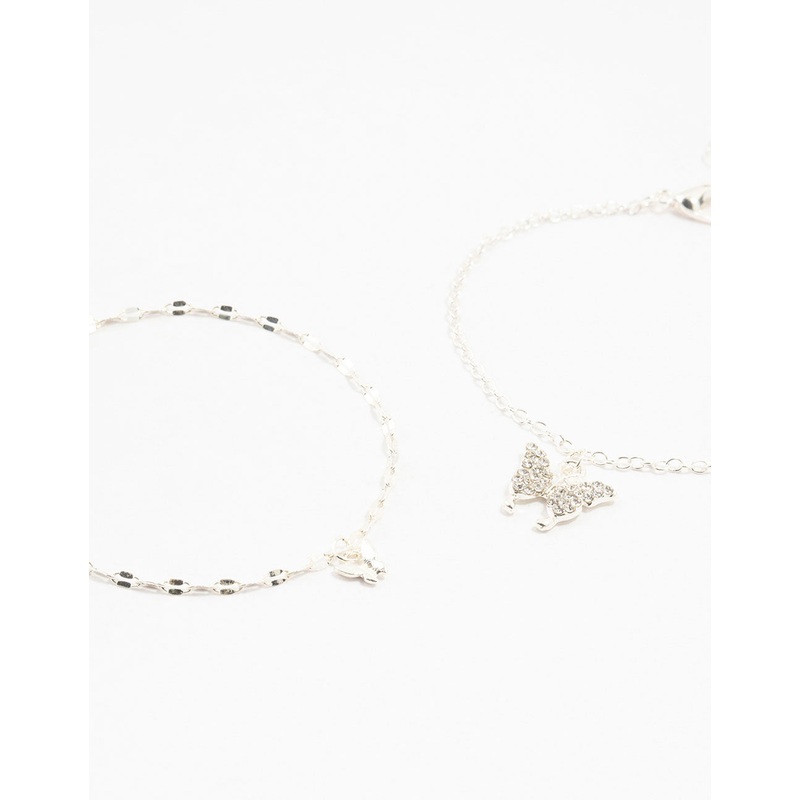 Silver Diamante Butterfly Charm Bracelets 2-Pack