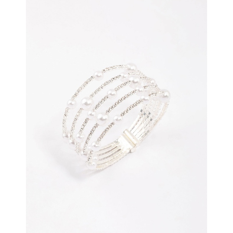 • Style this Silver Diamante & Pearl Decorative Wrist Cuff with a set of cup chain diamante earrings for a stand-out finish.