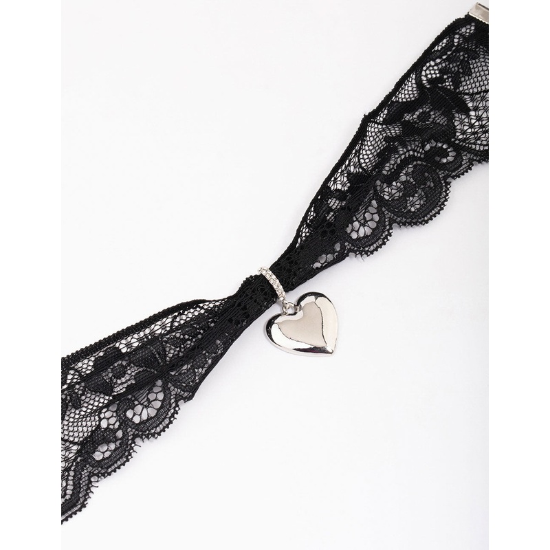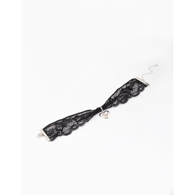 For a coquette-inspired finish to your look, style this black lace choker. This simple choker necklace features a thick lace band, adorned with a silver-toned heart charm for a romantic finish.