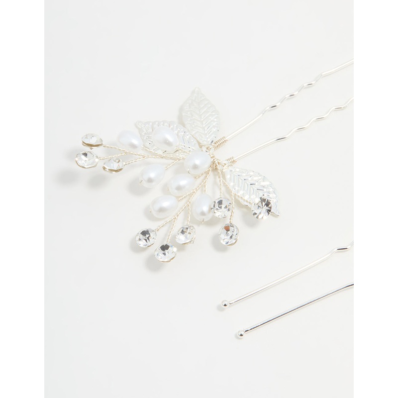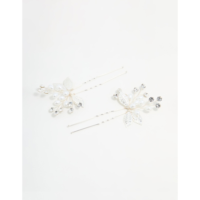 Silver Leaf Pearl & Diamante Bobby Pins 2-Pack