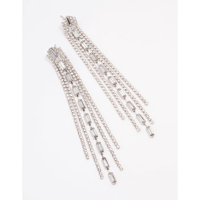 • These silver statement earrings feature a cascade of diamante strands for an eye-catching finish.