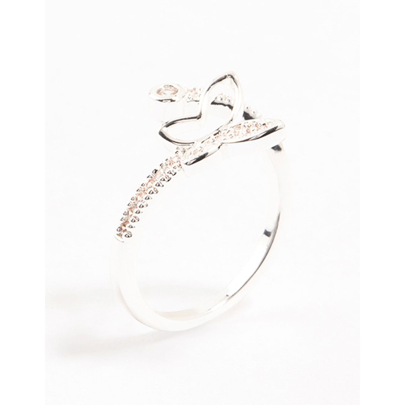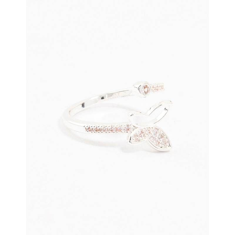 Silver Plated Butterfly Cubic Zirconia Wrapped Ring