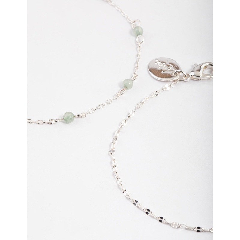 Show off your unique sense of style with pieces from our premium, Plated Semi Precious Collection. This double row bracelet is designed with genuine silver plating for long-lasting wear, and features a genuine semi-precious green fluorite stone.