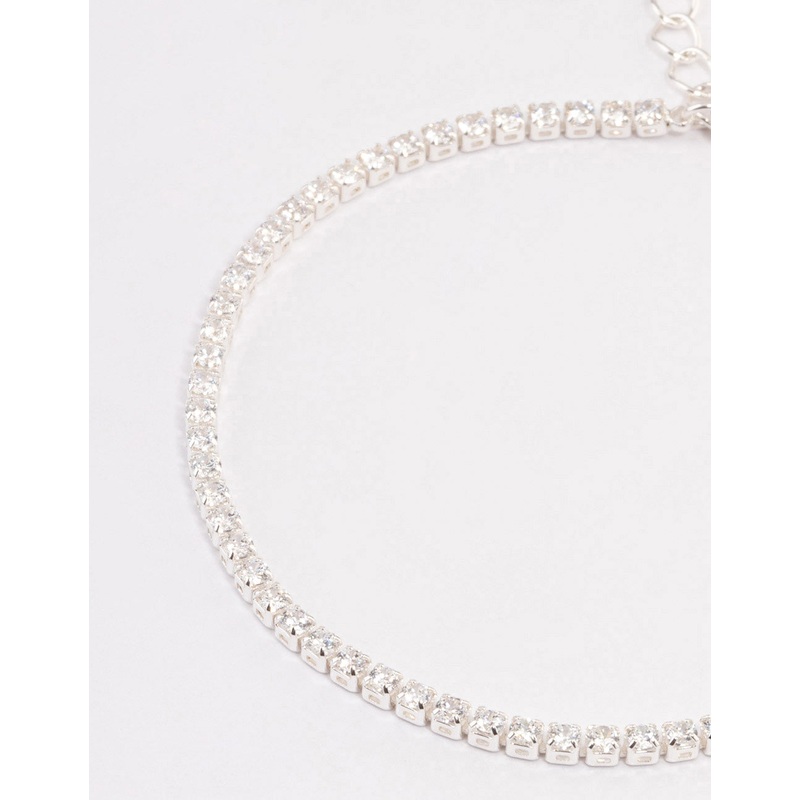 This dainty bracelet features a stunning silver setting with a tennis bracelet silhouette.