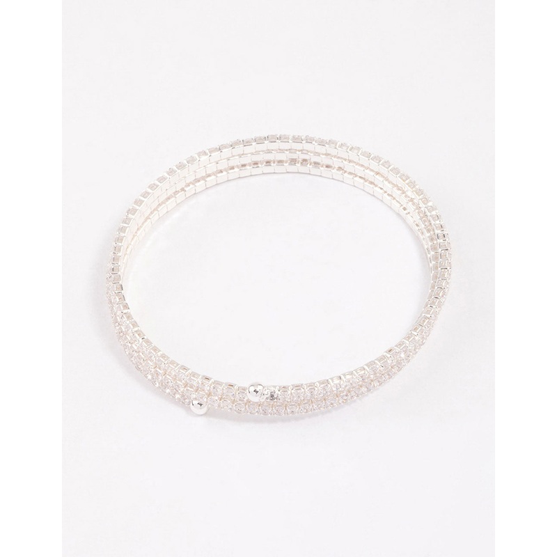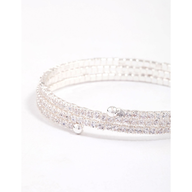 • This simple, silver plated wrist cuff features a cup chain design with marquise stones for added detail.