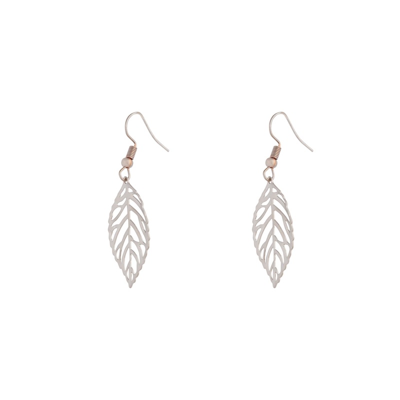 Silver Single Leaf Filigree Drop Earrings