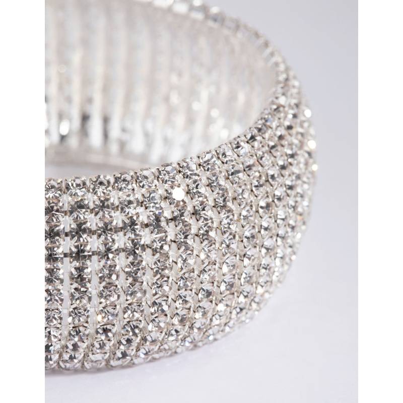 Dazzle with diamantes! This lovely bracelet boasts a perfect harmony of modern and classic styling. Wear it with black for an elegant look that conjures images of classic Hollywood, or have some fun and style it with a pop of colour!