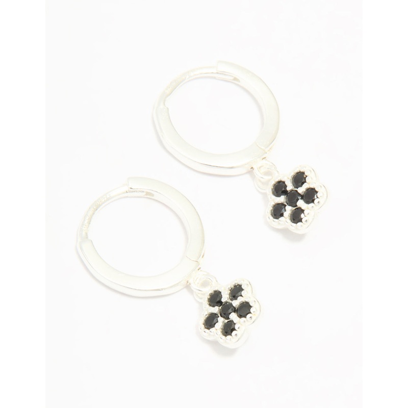 Be the first to review “Sterling Silver Black Cubic Zirconia Flower Huggie Earrings”