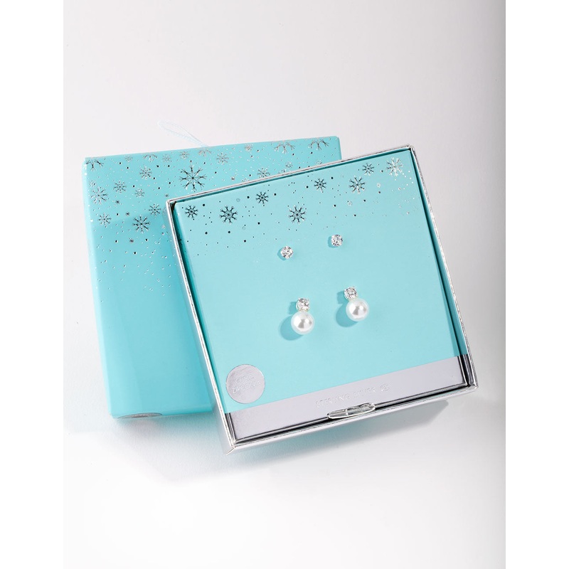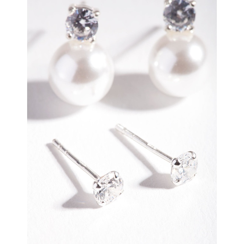 Sterling Silver Cubic Zirconia Pearl Stud Earring Pack