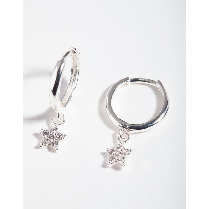 Sterling silver accessories are both reliable and fashionable. Complete your collection with high quality sterling silver pieces. This pair of hoops are made to fit like a huggie earring and feature a diamante embellished star design.